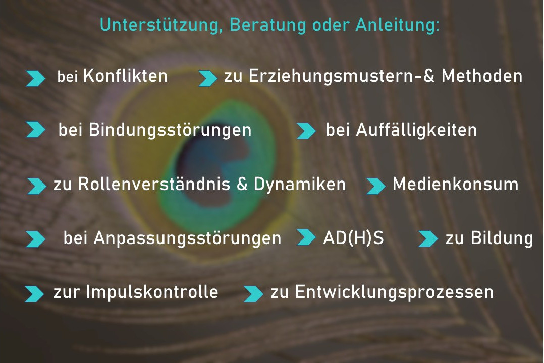 Beratung zur Erziehung & Entwicklung umfasst viele Aspekte des menschlichen Lebens. Der Umgang miteinander, sämtliche Prägungen, der kulturelle Hintergrund, Entwicklungsverläufe, die Familienkonstellation u.v.m. Mit fachlicher Expertise und ganzheitlichem Blick würde ich mich sehr freuen, mit Ihnen neue Wege & Perspektiven zu erarbeiten, damit Sie diesen wertvollen Auftrag genießen können und weitere Familien, Kinder, Eltern -im größeren Sinne die Gesellschaft- gestärkt werden.