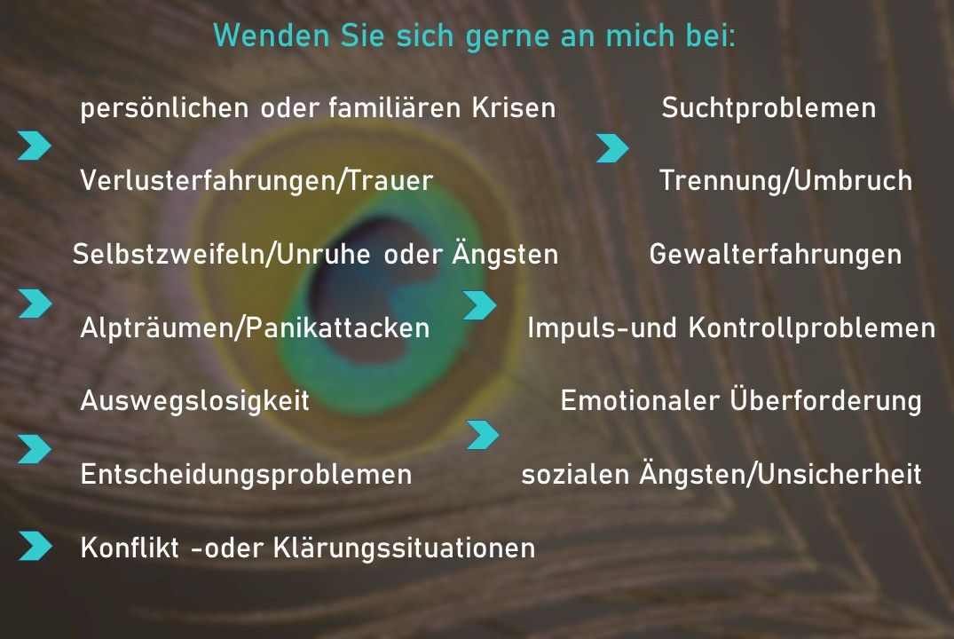 Mit Hingabe und Kompetenz würde ich mich freuen, Sie auf neue Wege begleiten zu dürfen. Es gibt immer wieder Zeiten, Umstände und Ereignisse im Leben, die Unterstützung und Hilfe erfordern. Wege werden verschüttet, sind trüb oder vernebelt, enden in Sackgassen oder führen in die falsche Richtung. Gerne reiche ich Ihnen die Hand auf stolprigen steinigen Pfaden und begleite Sie auf unentdeckte Wege.